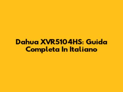Dahua XVR5104HS: Guida Completa In Italiano
