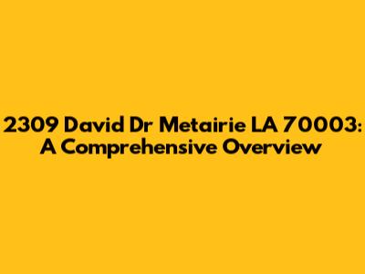 Let's dive into everything you need to know about the property located at 2309 David Dr, Metairie, LA 70003. This article will provide a detailed look at the location, its surroundings, and what makes it a notable address. Whether you're a potential buyer, a neighbor, or just curious, we've got you covered. We'll explore the specifics of the property, delve into the neighborhood vibe, and highlight the key amenities and attractions nearby. Understanding the nuances of a location is crucial, and this guide aims to offer a thorough and engaging perspective. So, grab a coffee, settle in, and let's explore what 2309 David Dr has to offer!
