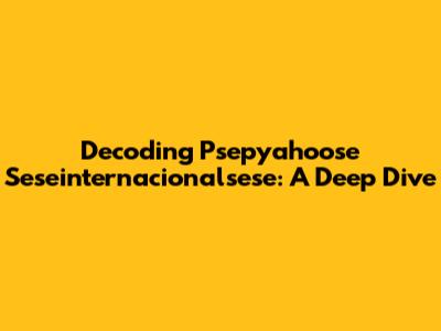Decoding Psepyahoose Seseinternacionalsese: A Deep Dive
