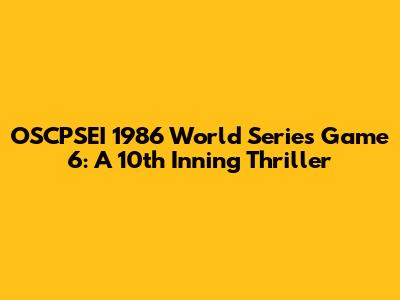 OSCPSEI 1986 World Series Game 6: A 10th Inning Thriller