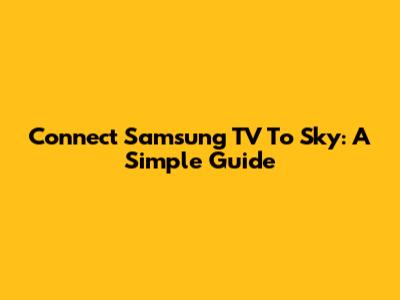 Connect Samsung TV To Sky: A Simple Guide