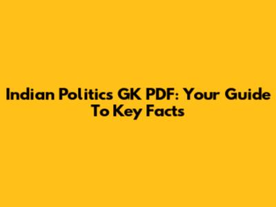 Indian Politics GK PDF: Your Guide To Key Facts