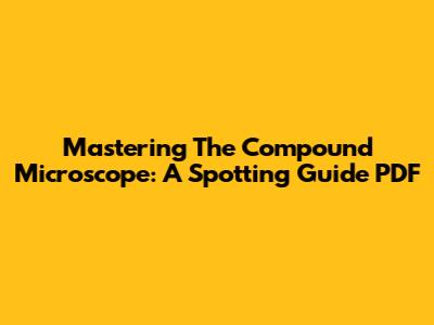 Mastering The Compound Microscope: A Spotting Guide PDF