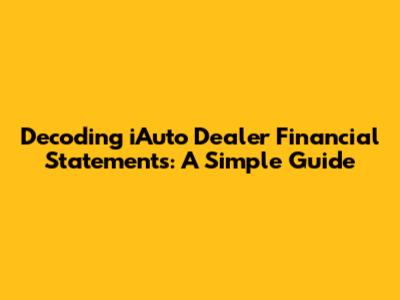 Understanding iAuto dealer financial statements is crucial for anyone involved in the automotive industry, whether you're an investor, a dealer yourself, or simply interested in the financial health of a dealership. These statements provide a snapshot of the dealership's financial performance and position, offering insights into its profitability, liquidity, and solvency. In this guide, we'll break down the key components of iAuto dealer financial statements, making them easier to understand and interpret.