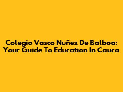 Colegio Vasco Nuñez De Balboa: Your Guide To Education In Cauca