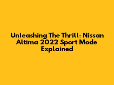 Unleashing The Thrill: Nissan Altima 2022 Sport Mode Explained