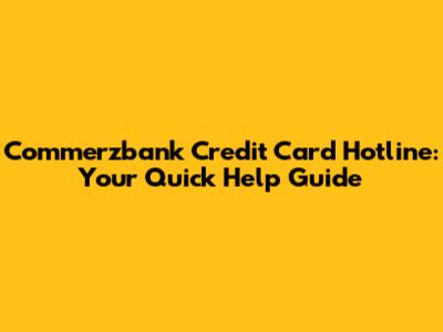 Commerzbank Credit Card Hotline: Your Quick Help Guide