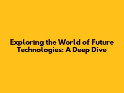 Exploring the World of Future Technologies: A Deep Dive