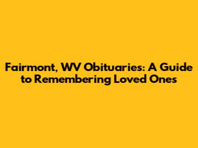 Hey guys! Losing someone is never easy, and when it happens, we often turn to obituaries to find out more about the person and how to honor their memory. If you're looking for information on Fairmont, West Virginia obituaries, you're in the right place. This article will guide you through where to find these notices, what information they usually contain, and why they're so important to the grieving process and the community. We'll delve into the local resources available, and how you can use them to celebrate the lives of those who have passed. Let's dive in!