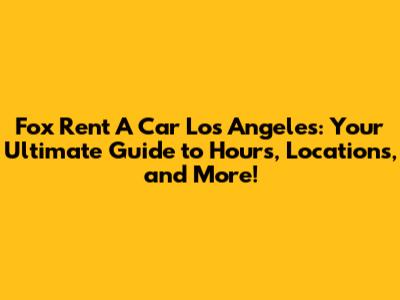 Understanding Fox Rent A Car Los Angeles Hours