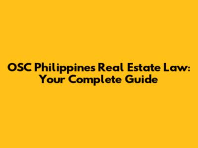 OSC Philippines Real Estate Law: Your Complete Guide