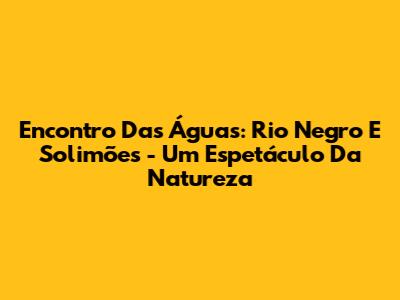 Encontro Das Águas: Rio Negro E Solimões - Um Espetáculo Da Natureza