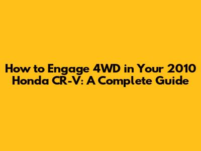 So there you have it, guys! A complete guide to understanding and engaging the 4WD system in your 2010 Honda CR-V. Remember, it's an automatic system designed to make your driving experience safer and more controlled. By understanding how it works, knowing when it engages, and keeping up with regular maintenance, you can ensure that your CR-V is ready to tackle whatever the road throws your way. Drive safe, and enjoy your adventures!