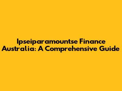 Ipseiparamountse Finance Australia: A Comprehensive Guide