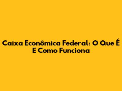 Caixa Econômica Federal: O Que É E Como Funciona