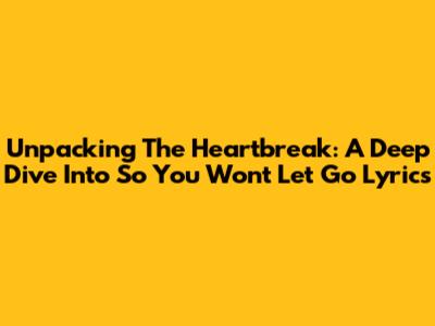 Unpacking The Heartbreak: A Deep Dive Into 'So You Won't Let Go' Lyrics