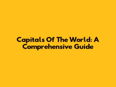 Capitals Of The World: A Comprehensive Guide