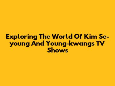 Exploring The World Of Kim Se-young And Young-kwang's TV Shows