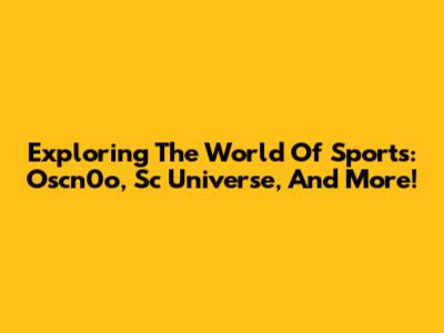 Exploring The World Of Sports: Oscn0o, Sc Universe, And More!