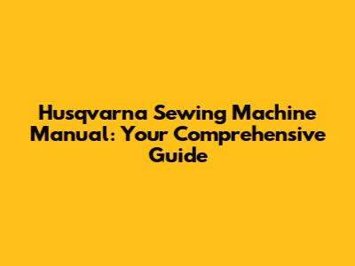Husqvarna Sewing Machine Manual: Your Comprehensive Guide