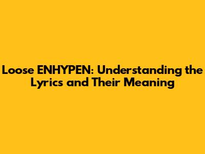 In conclusion, "Loose" by ENHYPEN is more than just a catchy song; it's a powerful anthem of self-discovery, freedom, and empowerment. Its lyrics delve into the complexities of breaking free from expectations and embracing one's true self. Through its uplifting melody and relatable message, "Loose" has resonated with listeners worldwide, making it a standout track in ENHYPEN's discography.