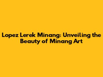 Hey guys! Ever heard of Lopez Lerek Minang? If not, you're in for a treat! This is where we dive deep into the heart of Minangkabau art and culture, exploring the fascinating world of Lopez Lerek, a unique artistic expression that's both captivating and full of tradition. So, buckle up and get ready to discover the beauty and significance of this incredible art form.