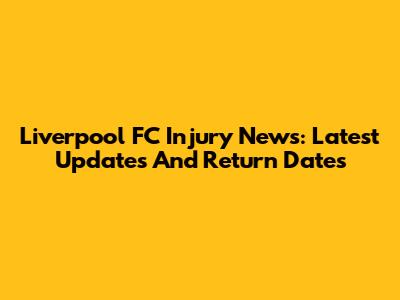 Liverpool FC Injury News: Latest Updates And Return Dates