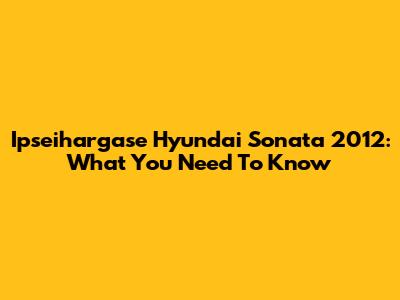 Ipseihargase Hyundai Sonata 2012: What You Need To Know