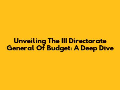 Unveiling The III Directorate General Of Budget: A Deep Dive