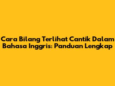 Cara Bilang 'Terlihat Cantik' Dalam Bahasa Inggris: Panduan Lengkap