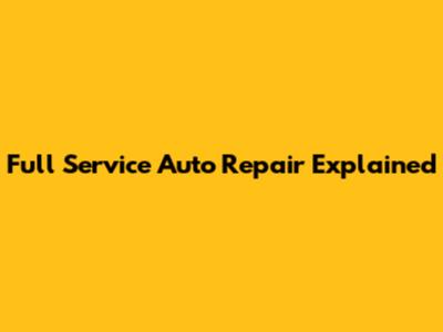 Full Service Auto Repair Explained
