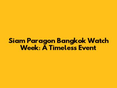 Siam Paragon Bangkok Watch Week: A Timeless Event