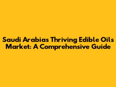 Saudi Arabia's Thriving Edible Oils Market: A Comprehensive Guide