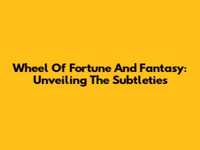 Wheel Of Fortune And Fantasy: Unveiling The Subtleties