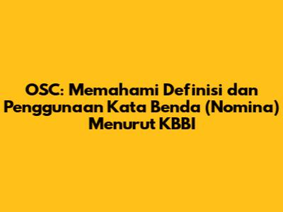 Hai, teman-teman! Pernahkah kalian mendengar tentang OSC dan bingung apa artinya? Atau mungkin kalian sering mendengar istilah kata benda atau nomina, tapi masih belum begitu paham? Jangan khawatir, karena dalam artikel ini, kita akan membahas tuntas tentang OSC, khususnya kaitannya dengan definisi kata benda (nomina) menurut Kamus Besar Bahasa Indonesia (KBBI). Yuk, simak penjelasan lengkapnya!