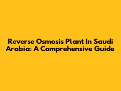 Reverse Osmosis Plant In Saudi Arabia: A Comprehensive Guide