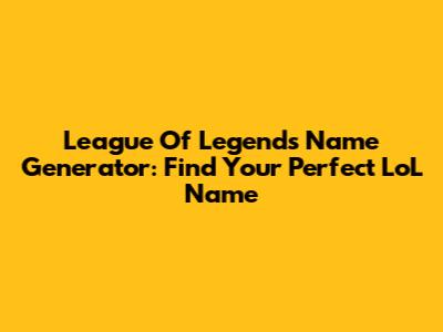 League Of Legends Name Generator: Find Your Perfect LoL Name