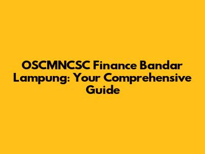 Hey guys! 👋 Ever heard of OSCMNCSC Finance in Bandar Lampung and wondered what it's all about? Well, you've come to the right place! In this article, we're going to dive deep into everything you need to know about OSCMNCSC Finance in Bandar Lampung. Let's get started!