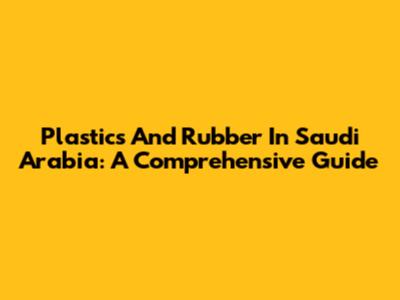 Plastics And Rubber In Saudi Arabia: A Comprehensive Guide