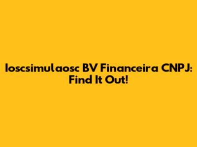 Ioscsimulaosc BV Financeira CNPJ: Find It Out!