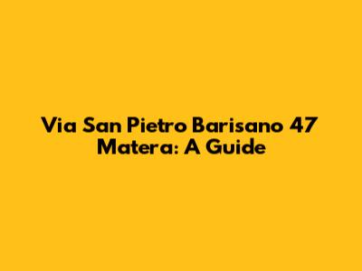 Via San Pietro Barisano 47 Matera: A Guide