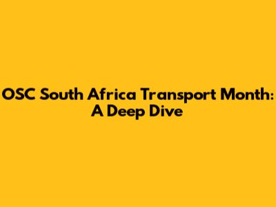OSC South Africa Transport Month: A Deep Dive