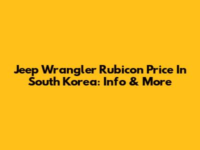 Jeep Wrangler Rubicon Price In South Korea: Info & More