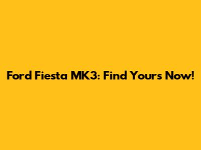 Ford Fiesta MK3: Find Yours Now!
