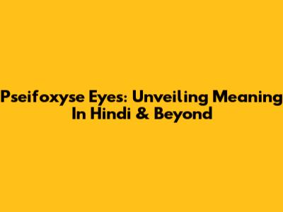 Pseifoxyse Eyes: Unveiling Meaning In Hindi & Beyond