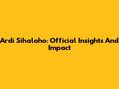 Ardi Sihaloho: Official Insights And Impact