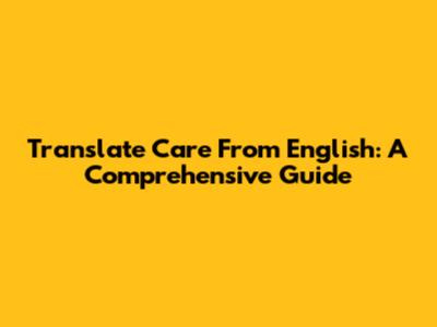 Translate Care From English: A Comprehensive Guide