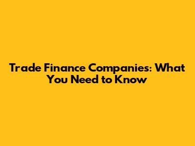 What is a Trade Finance Company?