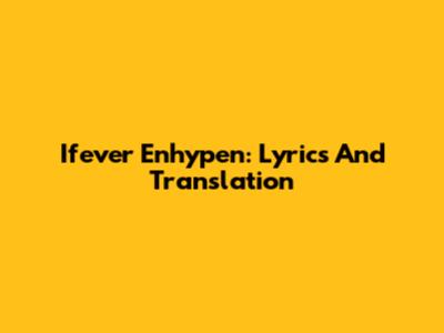 Ifever Enhypen: Lyrics And Translation