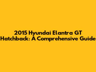 2015 Hyundai Elantra GT Hatchback: A Comprehensive Guide